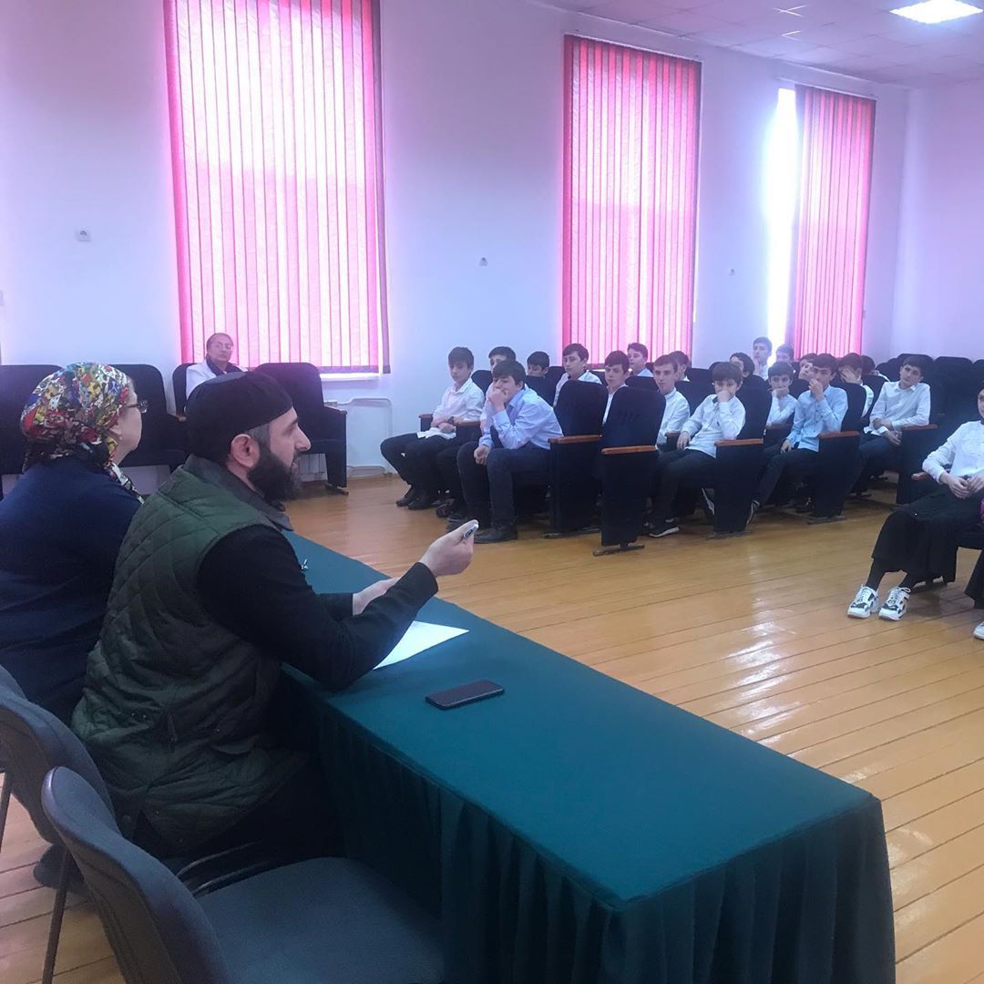 10.03.2020Ведущий специалист Департамента по связям с религиозными и общественными организациями Администрации Главы и Правительства Чеченской Республики Абдурахманов Мохьмад провел сегодня беседу по духовно-нрпвственному воспитанию с учащимися МБОУ "СОШ 34".
