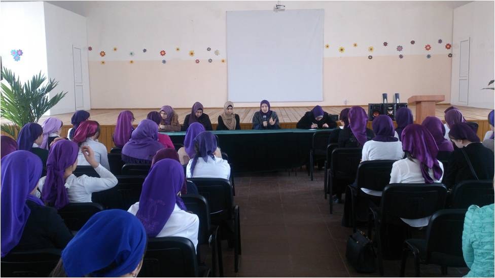 24.11.2014В рамках духовно-нравственного воспитания учащихся, 24 ноября 2014 года в актовом зале школы прошла встреча учениц 7-11 классов с активистами клуба «Иман».
