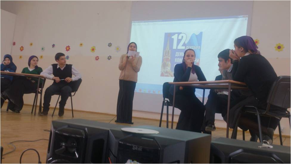 Во всех классах проведены классные часы и беседы о правах и обязанностях граждан. 12 декабря среди учащихся 10-х классов проведен конкурс на лучших знатоков статей Конституции. Учащиеся показали хорошее знание статей Конституции своих прав и обязанностей.