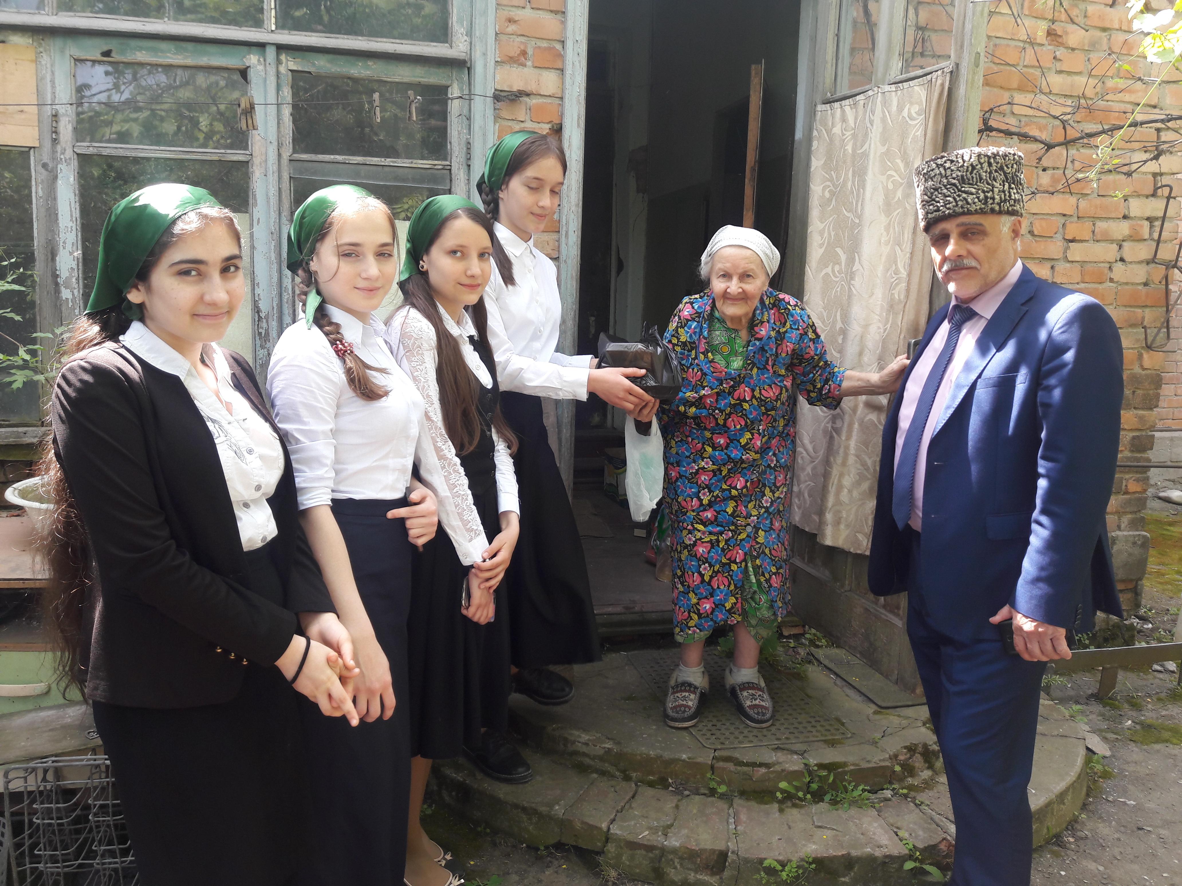 09.05.2018Члены патриотического отряда «Юные Кадыровцы» поздравили с праздником Великой Победы вдову ветерана ВОВ Татарову Л.Н..