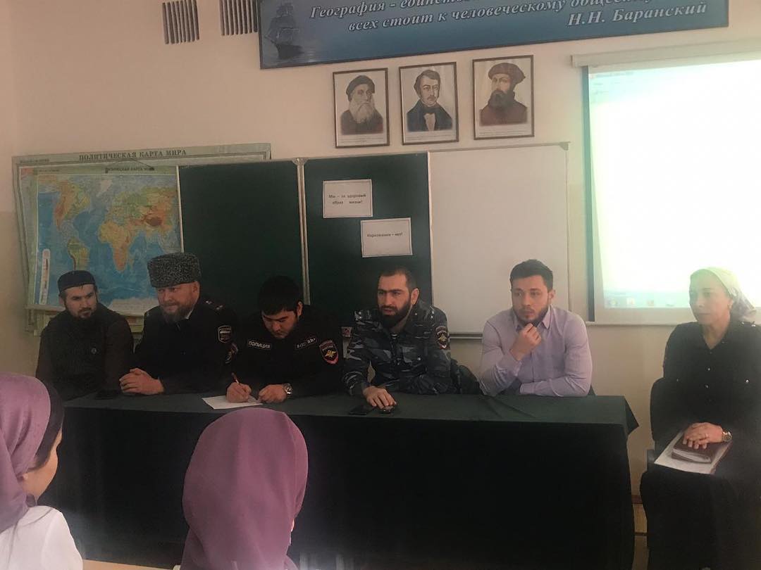 Беседу провели: Эльдаров М.С-Х. Инспектор ОМВП УНК МВД по ЧР, Ибрагимов М.А. представитель Министерства культуры, Межидов М.Д. начальник ОПДН ОП 2 УМВД России по Г. Грозный, Нухаев М.М. главный специалист отдела соц.программ Министерства Молодежи, Хадисова Э.Н. старший инспектор ОПДН ОП 2 УМВД России по г.Грозный.